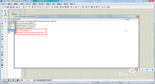 如果電路有錯誤的地方,點擊開始仿真,會自動彈出錯誤窗口,紅圈內(nèi)是錯誤向提示