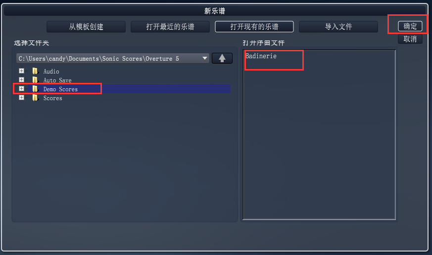 Overture自制譜表模板教程下載一首有你需要的模板的譜子,存在相應(yīng)文件夾下,使用Overture打開現(xiàn)有的樂譜,如Badinerie,點(diǎn)擊確定: