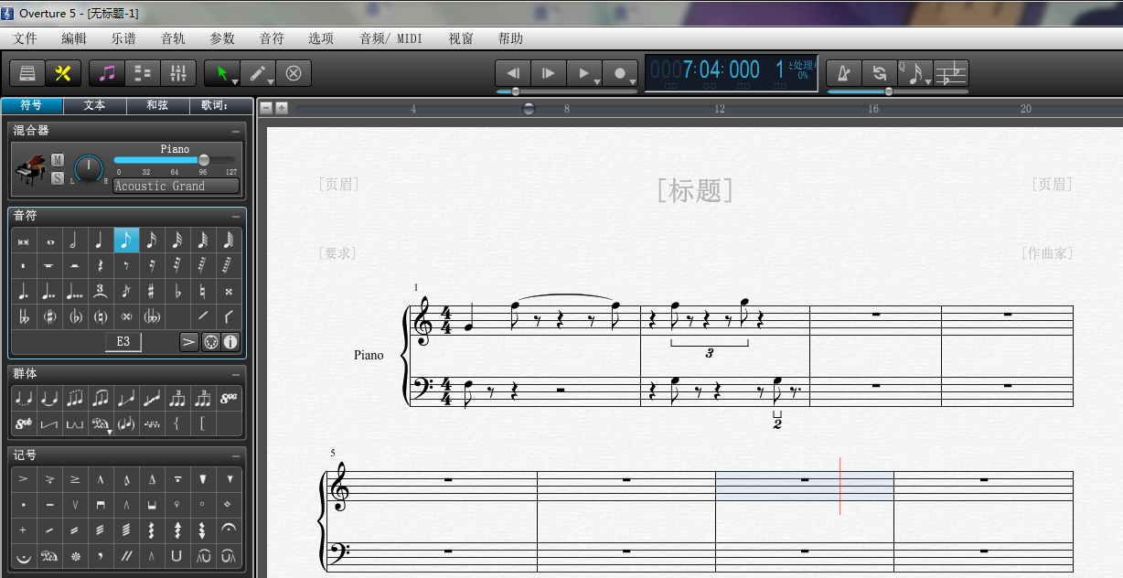在五線譜中輸入和編輯音符和各種記號(包括六線譜和打擊樂)按照較高規(guī)范度和整潔度調(diào)整譜面