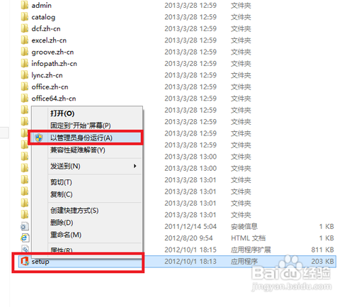 1、下載Microsoft office 2013安裝包,并解壓,在里面找setup.exe,以管理員身份運(yùn)行