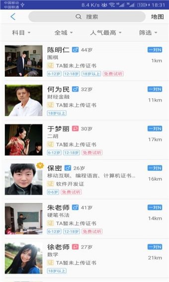1.選項:使用者可以根據(jù)自己的實際情況,選擇合適的教學模式、服務人群、老師性別、免費試聽等。方便使用者找到最合適的老師。2.簡介:使用者們可以閱讀老師的詳細資料,更快速的了解老師的教學經歷。