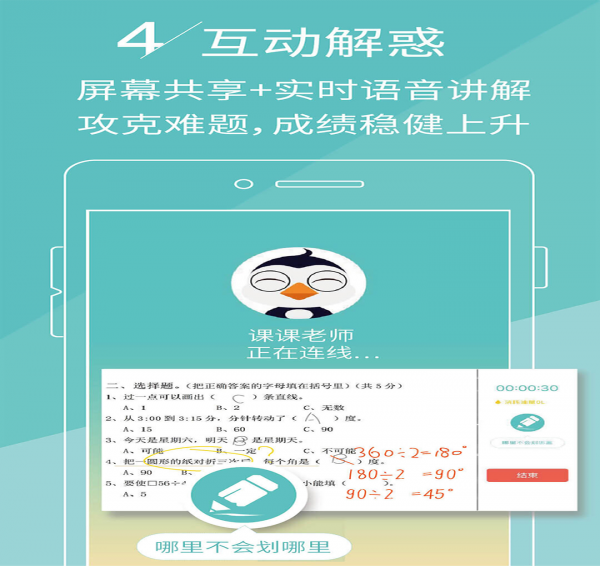 3.作業(yè)疑難:對(duì)作業(yè)中出現(xiàn)的疑難問(wèn)題,直接點(diǎn)擊疑難題目,與老師連線講解,幫助孩子復(fù)習(xí)和鞏固所學(xué)新知識(shí),不產(chǎn)生知識(shí)積壓;