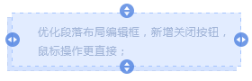 優(yōu)化段落布局編輯框,新增關(guān)閉按鈕,鼠標(biāo)操作更直接;