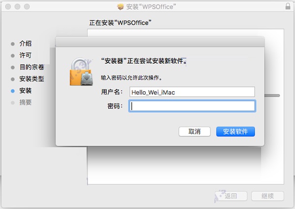 4、這一步點(diǎn)擊“繼續(xù)”后會(huì)出現(xiàn)需要輸入密碼,我們輸入本機(jī)macOS開(kāi)機(jī)密碼即可,然后點(diǎn)擊”好“