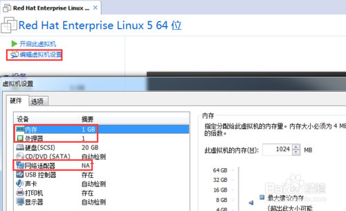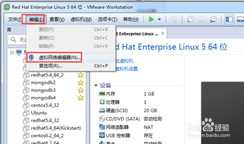 vmware workstation的編輯功能,在虛擬機關閉的情況下能夠調整內存大小、CPU個數、網絡連接方式,如圖。