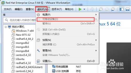 點擊“虛擬機”>>"可移動設備",能將物理機的移動設備提供給虛擬機使用,比如移動硬盤、光驅等,如圖。