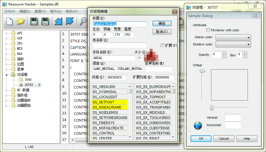 對話、菜單、字符串表、快捷鍵和消息表資源腳本(以及 Borland 窗體)可以通過使用內(nèi)部資源腳本編輯器被編輯和重新編譯。資源也可以被某個 *.res 文件所替換,只要替換的資源與其是同一類型并且有相同的名稱即可。