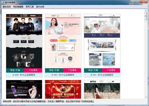 久久晴天淘寶店鋪特效裝修軟件能生成全屏裝修代碼、固定背景代碼、全屏海報、反暗亮模塊、懸停切圖、卡盤輪播、縮略圖輪播、放大鏡、手風(fēng)琴、滾動輪播、底部卡盤輪播、右側(cè)卡盤輪播、多圖格子輪播、多圖寶貝秀、方塊導(dǎo)航輪播、動感格子輪播、百葉窗等