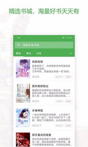【精選圖書】無論小眾大眾,冷門熱門,小資簡約,所有你想要的書籍暢讀無門檻,high起來;【高清設置】護眼模式、仿真等多翻頁效果、自定義閱讀設置,統(tǒng)統(tǒng)幫你搞定;