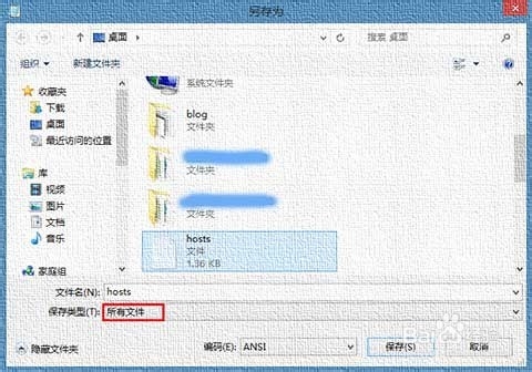 6、選擇“另存為”,選擇保存文件類似為“所有文件”,并選中桌面上的hosts文件,點擊保存覆蓋,并桌面上的hosts文件復(fù)制到C:\Windows\System32\Drivers\etc覆蓋原有的hosts文件,到此才完成Adobe Photoshop CS6 Extended的激活。運行Adobe Photoshop CS6 Extended看看是否還會提示激活和是否可以使用Adobe Photoshop CS6 Extended的3D功能。