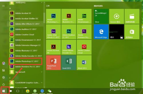 最后我們打開PS來驗證,一般做桌面上不會顯示PS的快捷圖標(biāo)。我們點擊電腦左下角的【開始】按鈕,然后查看所有程序即可找到。單擊運行既可以。