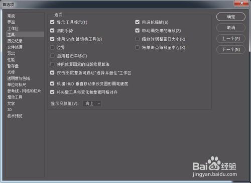 找到工具選項面板,將滾輪縮放打開,關(guān)掉輕擊平移功能即可!