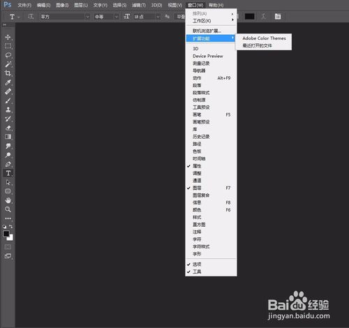 第一步打開PS,可以明顯的看到拓展功能里面只有ADOBE自帶的一個色輪面板,今天我們就先安裝一下RA這個插件。
