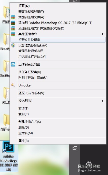 找到PS的的快捷方式,右鍵打開文件位置。
