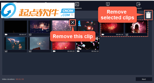 要從視頻中刪除文件,請(qǐng)單擊每個(gè)文件右上角的或選擇要?jiǎng)h除的文件,然后單擊列表上方的垃圾箱按鈕。