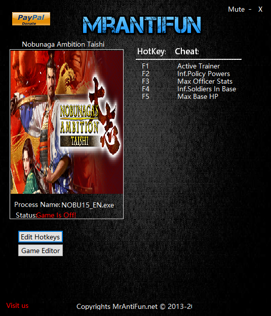 信長之野望大志八項修改器是一款功能強大、操作簡便的游戲數(shù)據(jù)修改工具。信長之野望大志pc修改器主要為玩家們提供了無限城池兵量、無限基礎(chǔ)血量、設(shè)置黃金...等功能,可以滿足玩家的不同需求。