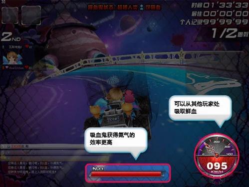 當(dāng)有玩家的HP耗盡,會(huì)被德古拉控制,轉(zhuǎn)變?yōu)槲恚∥砟芨尤菀椎墨@得氮?dú)猓瑫r(shí),當(dāng)他超過前面的人類玩家時(shí),可以吸取一點(diǎn)HP。比賽中有吸血鬼出現(xiàn)后,人類玩家需要加速逃亡,他們可以通過默認(rèn)按空格鍵獻(xiàn)祭一點(diǎn)鮮血獲得1個(gè)氮?dú)?,這是策略性玩法還是飲鴆止渴?一切盡在于您的選擇!