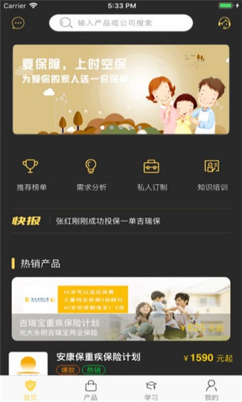 【高效展業(yè)】:豐富的暢銷保險產(chǎn)品在線展示和交易,熱銷壽險產(chǎn)品的算費工具免費隨身攜帶。