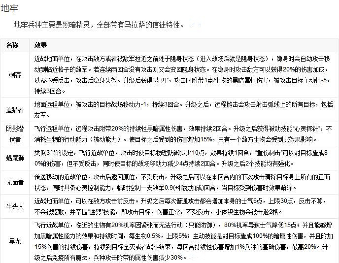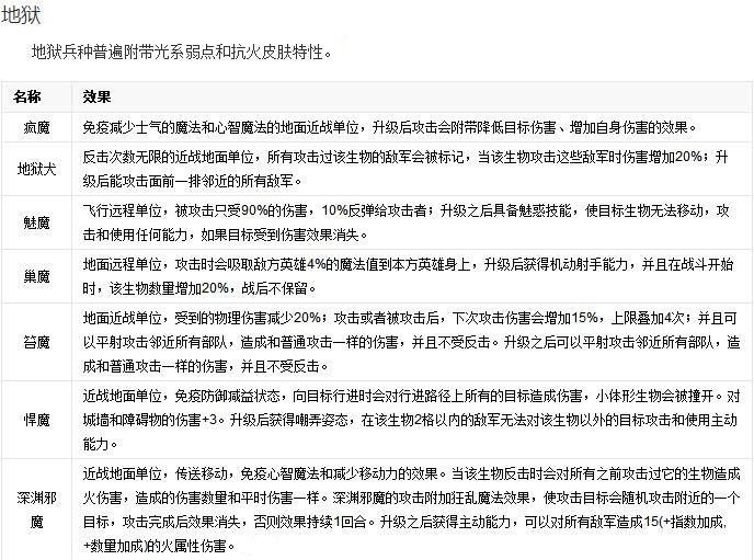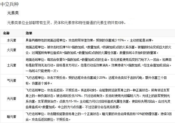 在《英雄無敵6》中,兵種單位的天生屬性更加詳細(xì)具體。列表如下