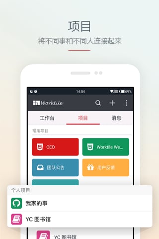 Worktile 商業(yè)版圍繞著協(xié)作,擴展出了溝通、辦公、連接、管理的全面理念。