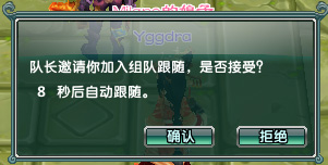 當10秒不選擇則自動選擇進入組隊跟隨??梢苑奖愕膸ё吒浇鼤簳r離開的隊員。
