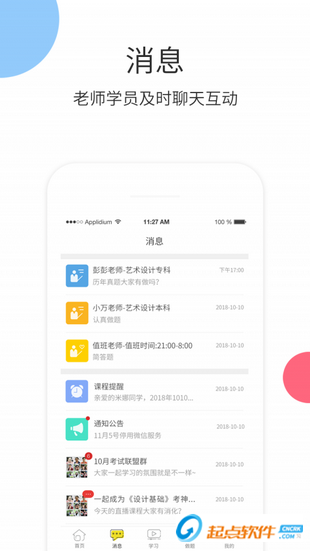 用戶可以在平臺內(nèi)與我的班主任、值班老師 以及機器人,隨時隨地發(fā)起在線聊天,專業(yè)的學習指導讓你的學習更加舒心