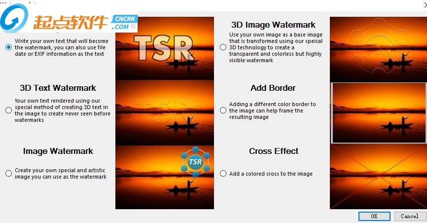 TSR Watermark Image可以添加數(shù)字水印到圖像,透明度支持自定義。你可以使用文字或其他作為水印的圖片創(chuàng)建水印來源。如果您要添加水印的背景,你可以設(shè)置標(biāo)志或文字,或多或少透明,并定義圖像上的透明顏色或選擇在上面的透明色的左上角第一個(gè)像素。您甚至可以使用photoshop,而不是到你的圖片水印,這是一個(gè)讓您所有的圖片上的水印更快更簡(jiǎn)單的軟件。