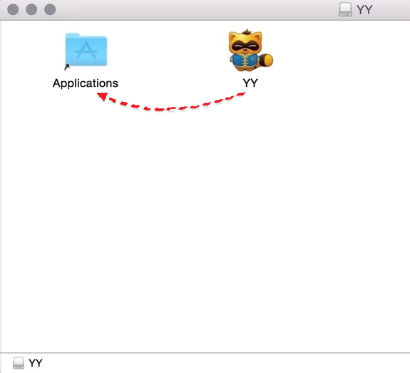 1、下載完成 YY 安裝程序包以后,點(diǎn)擊打開(kāi),直接把 YY 圖標(biāo)拖動(dòng)到應(yīng)用程序文件夾中即可,如下圖: