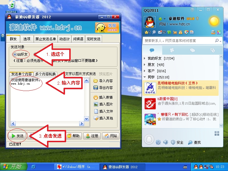 第三步:輸入發(fā)送的內(nèi)容,點“發(fā)送”按鈕