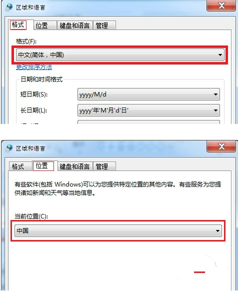 1、打開控制面板,點擊區(qū)域圖標,格式和位置都改成“中文、中國”。