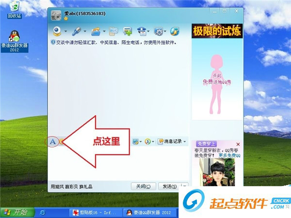 在QQ聊天窗口上面修改字體,發(fā)送時使用修改過的字體。如下圖操作: