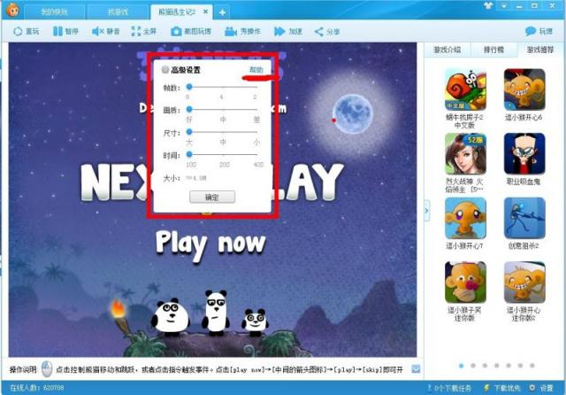 O(∩_∩)O哈哈~小游戲秀操作功能,是錄制你的游戲過程,發(fā)表到玩博的一項功能,以前因為只能錄制10秒,眾多童鞋大呼不爽!現(xiàn)在來看看新增的高級設(shè)置功能吧!?。∪缦聢D所示,點擊“秀操作”->“設(shè)置按鈕”