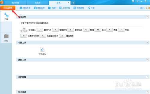點盒子主頁的游戲圖標后,會進入游戲管理界面。要啟動游戲的話,點左上角的啟動游戲程序即可。在這個頁面還會提供相關(guān)的服務(wù),例如點游戲修復(fù),會檢測并且下載運行庫,游戲加速,云存檔等功能。游戲操作也會提示。