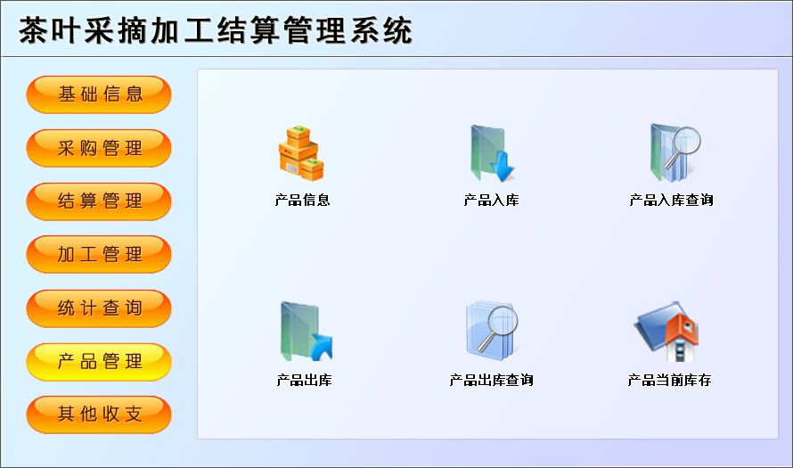 《茶葉采摘加工結(jié)算管理系統(tǒng)》是一款適用于中小茶葉采摘基地園管理工作的需要,主要包括基礎(chǔ)信息、采購管理、結(jié)算管理、加工管理、產(chǎn)品管理等功能。本管理系統(tǒng)多處具有快速輔助錄入功能,操作簡單,易學(xué)、易用;處理功能高效強(qiáng)大,是協(xié)助您的好幫手!