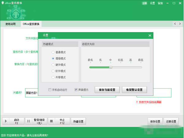 1、支持Word、Excel、PPT;2、支持多文件,多關(guān)鍵字同時搜索和替換;