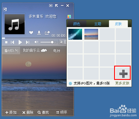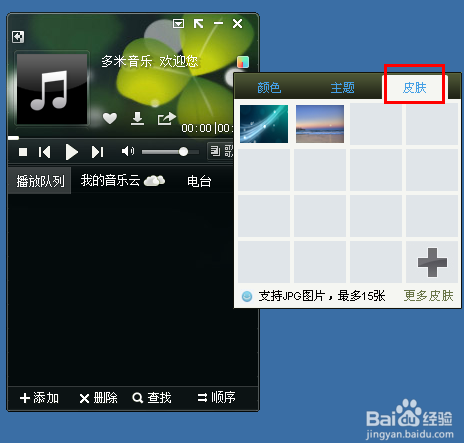 當(dāng)然,我們也可以設(shè)置自定義的皮膚,也就是一張圖片,我們選擇“皮膚”