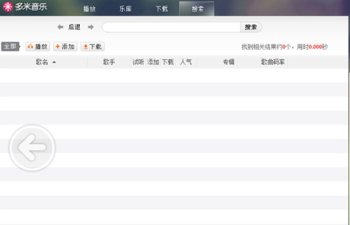 搜索頁(yè)面中,可以鍵入關(guān)鍵詞來搜索,關(guān)鍵詞可以是歌曲名、歌手名甚至專輯名,多米音樂會(huì)自動(dòng)識(shí)別