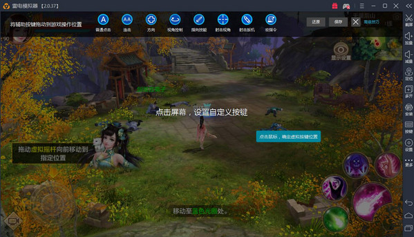 設(shè)置方式:鼠標(biāo)移動(dòng)到功能區(qū)的方向鍵上左鍵長(zhǎng)按拖動(dòng)到游戲的方向按鍵位置。