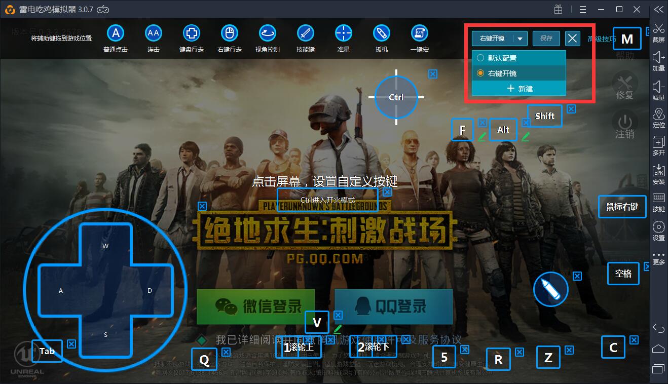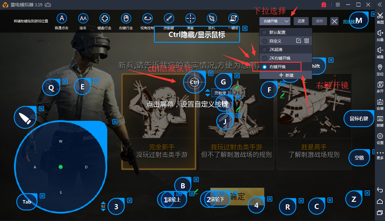 注意:為了還原端游操作,雷電模擬器推出右鍵開(kāi)鏡按鍵套裝