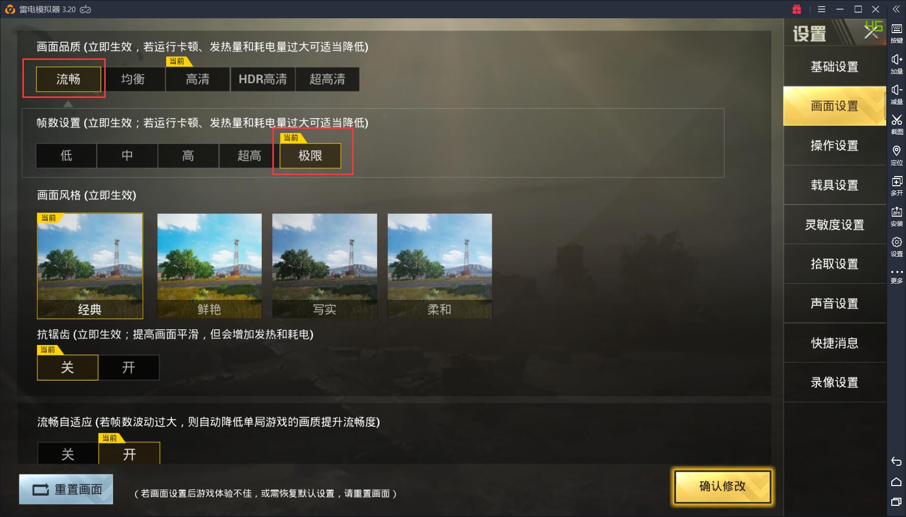 2.游戲里設(shè)置流暢+極限幀率。在1080分辨率下流暢畫(huà)質(zhì)已經(jīng)很不錯(cuò)了,沒(méi)必要更高的畫(huà)質(zhì),除非您的電腦配置非常好。(1080分辨率設(shè)置教程)
