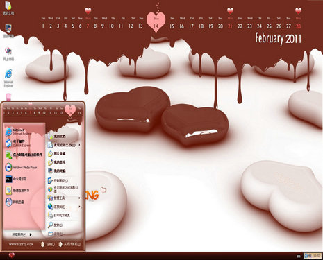 情人節(jié)日歷主題是一款巧克力甜蜜愛情電腦桌面.2011情人節(jié)將至,不少年輕人已經(jīng)開始準備節(jié)日禮物,送給心愛的人,趁著節(jié)日之際,將這款溫馨浪漫的情人節(jié)主題禮物送給天下所有情侶們,祝大家情人節(jié)快樂.