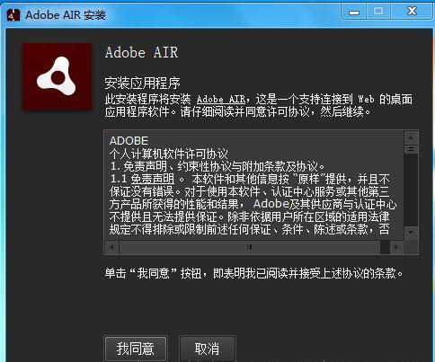 下載完Adobe AIR安裝文件后,自動彈出下圖所示的安裝提示框,點擊【我同意】進(jìn)行安裝