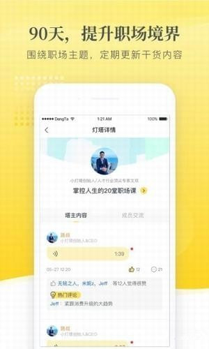 在開課時(shí)間里,導(dǎo)師將圍繞一個(gè)職場(chǎng)主題,把自己的思考和經(jīng)驗(yàn)濃縮成一條條動(dòng)態(tài),向?qū)W員們娓娓道來。你可以像瀏覽朋友圈一樣,每天瀏覽、評(píng)論導(dǎo)師日常的職場(chǎng)知識(shí)動(dòng)態(tài),為導(dǎo)師的精彩動(dòng)態(tài)點(diǎn)贊喝彩。