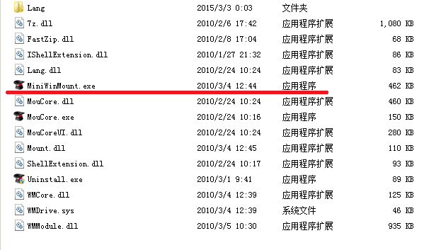 綠色軟件,無需安裝,總大小4M??偣灿邪?0幾個文件。MiniWinMount.exe是主程序。