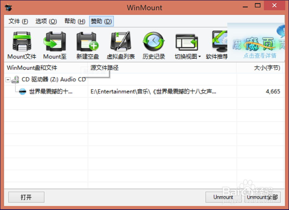 支持將音頻格式APE、FLAC、WV、WAVE掛載為虛擬CD-ROM。