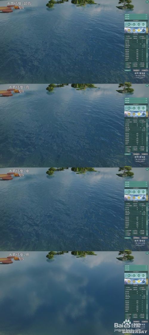 重制版優(yōu)化瓶頸之三,這個選項也是開超高,高和中幾乎沒區(qū)別,開低畫面也不錯。對于那些面積不是很大的水,開低和開中區(qū)別也不大。所以還是開低吧。在七秀把水面精度調(diào)低可以提高5fps。