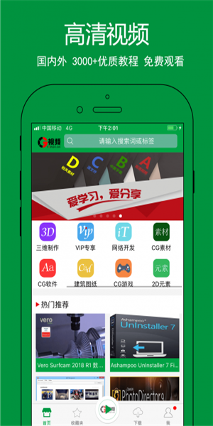 CG視頻app,是移動(dòng)學(xué)習(xí)App,擁有3000+國(guó)內(nèi)外優(yōu)質(zhì)視頻,無(wú)論你是在校學(xué)生還是各行各業(yè)上班族,希望自我提升或是充實(shí)生活,都可以在這里發(fā)現(xiàn)好教程,核心技術(shù)和工作流程!視頻庫(kù),專業(yè)團(tuán)隊(duì)精心整理,一鍵收藏!高級(jí)案例全流程實(shí)戰(zhàn)教學(xué)!