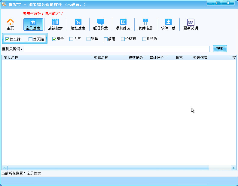 1.搜索第1種搜索方式:.按照寶貝關(guān)鍵字及其他選項(xiàng)搜索寶貝賣家,同時(shí)可以提取其買家。