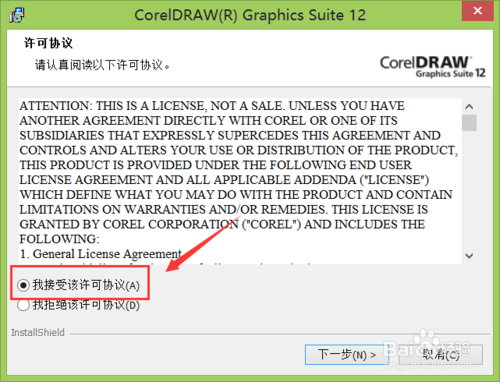 找到CDR的安裝文件雙擊彈出許可協議對話框,在該對話框內勾選我接受安裝許可協議選項,如圖所示: