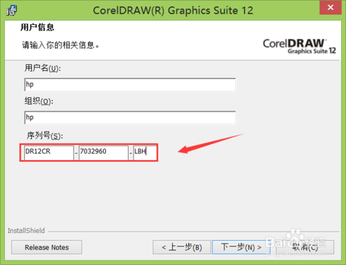 然后點擊下一步,在彈出的對話框內輸入相關信息及序列號嗎,如圖所示: